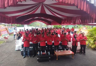 Acara dibuka dengan pemotongan tumpeng yang dilakukan oleh kader PDIP sebagai simbol rasa syukur dan persatuan dalam menghadapi tantangan politik ke depan.
